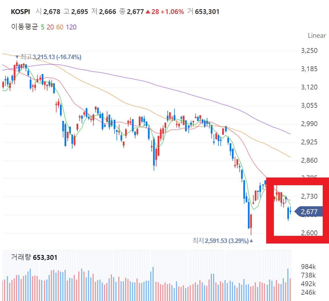 금일 25일 코스피는 전날보다 1.06% 오른 2676.76, 코스닥은 2.92% 오른 872.98에 마감하였습니다. 러시아의 우크라이나 수도 공습이라는 대형 악재에도 불구하고 증시는 오히려 반등하였습니다. 일본(1.95%)·대만(0.33%) 등 아시아 증시도 전날 급락세를 딛고 상승하였습니다.