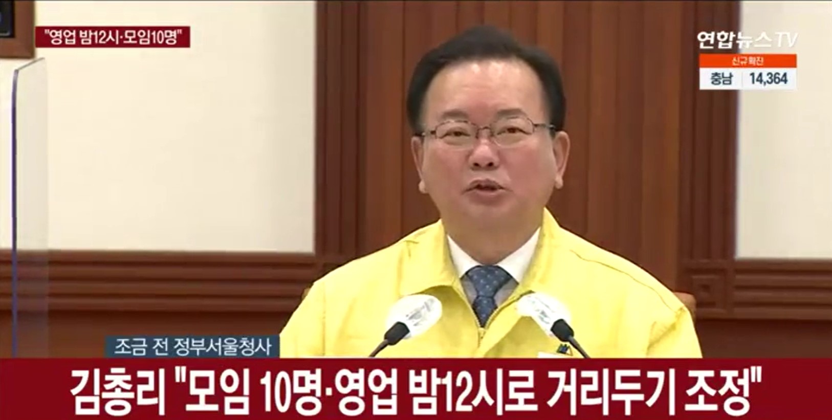 ▶ 다음주 월요일부터(04일) "모임 10명·영업 밤12시로 거리두기 개편"