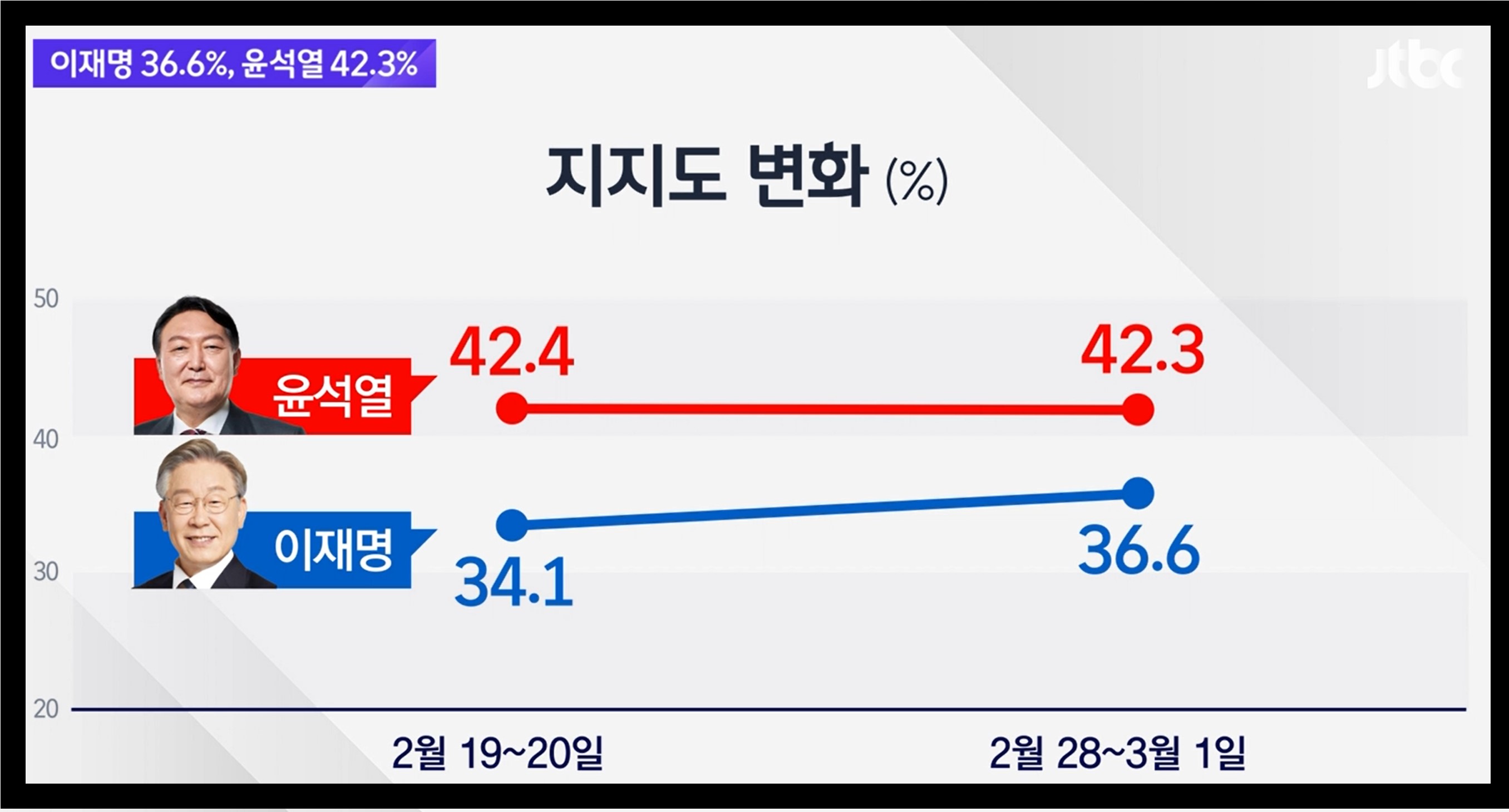 윤석열 이재명 3차 대선토론 전 JTBC의 "마지막 여론조사"