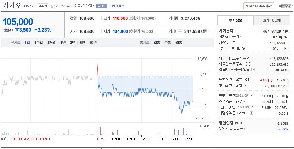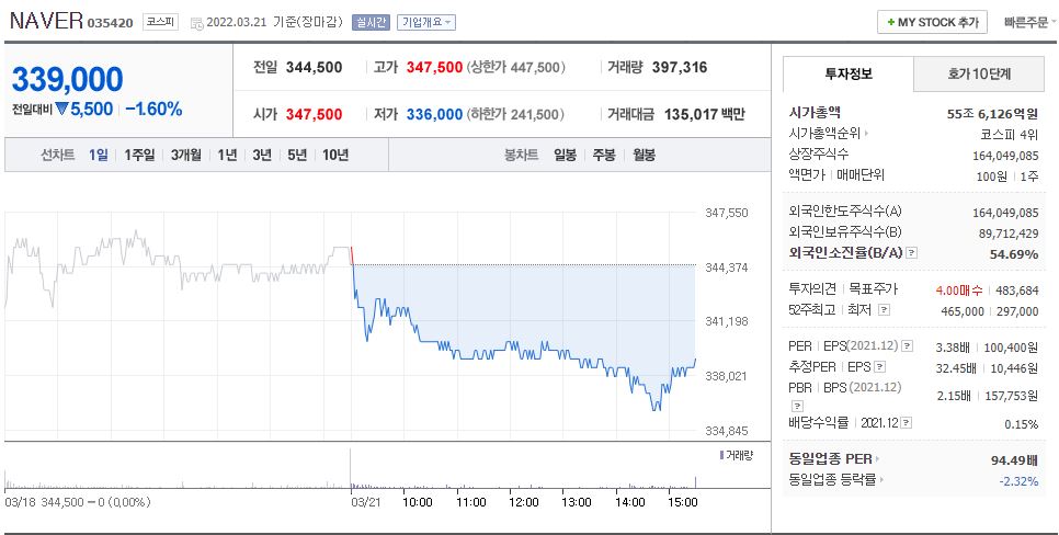 21일 한국거래소에 따르면 규제 리스크에 움츠러들어 있던 네이버와 카카오는 윤석열 국민의힘 후보 대통령 당선 직후 이날까지 각각 11.49%, 15.63% 급등했습니다. 현재 네이버는 33만9500원을, 카카오는 10만6500원에 거래되고 있습니다.