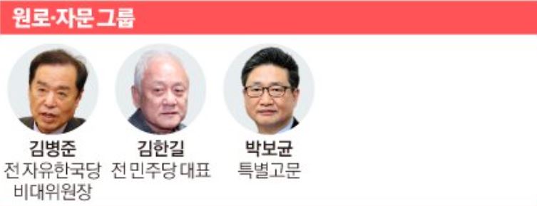 정치권의 대표적 책사 중 한명인 김 전 대표는 윤 당선인을 정치로 이끈 대표적 인사로 꼽힙니다. 선대위 출범 당시 새시대준비위원장을 맡으며 정국 상황 등과 관련해 윤 당선인과 수시로 소통해왔다고 합니다. 후보 특별고문을 맡은 박보균 전 중앙일보 대기자, 경제고문 역할인 윤진식 전 청와대 정책실장도 윤 당선인에게 수시로 자문을 해온 중량감 있는 인사들입니다.