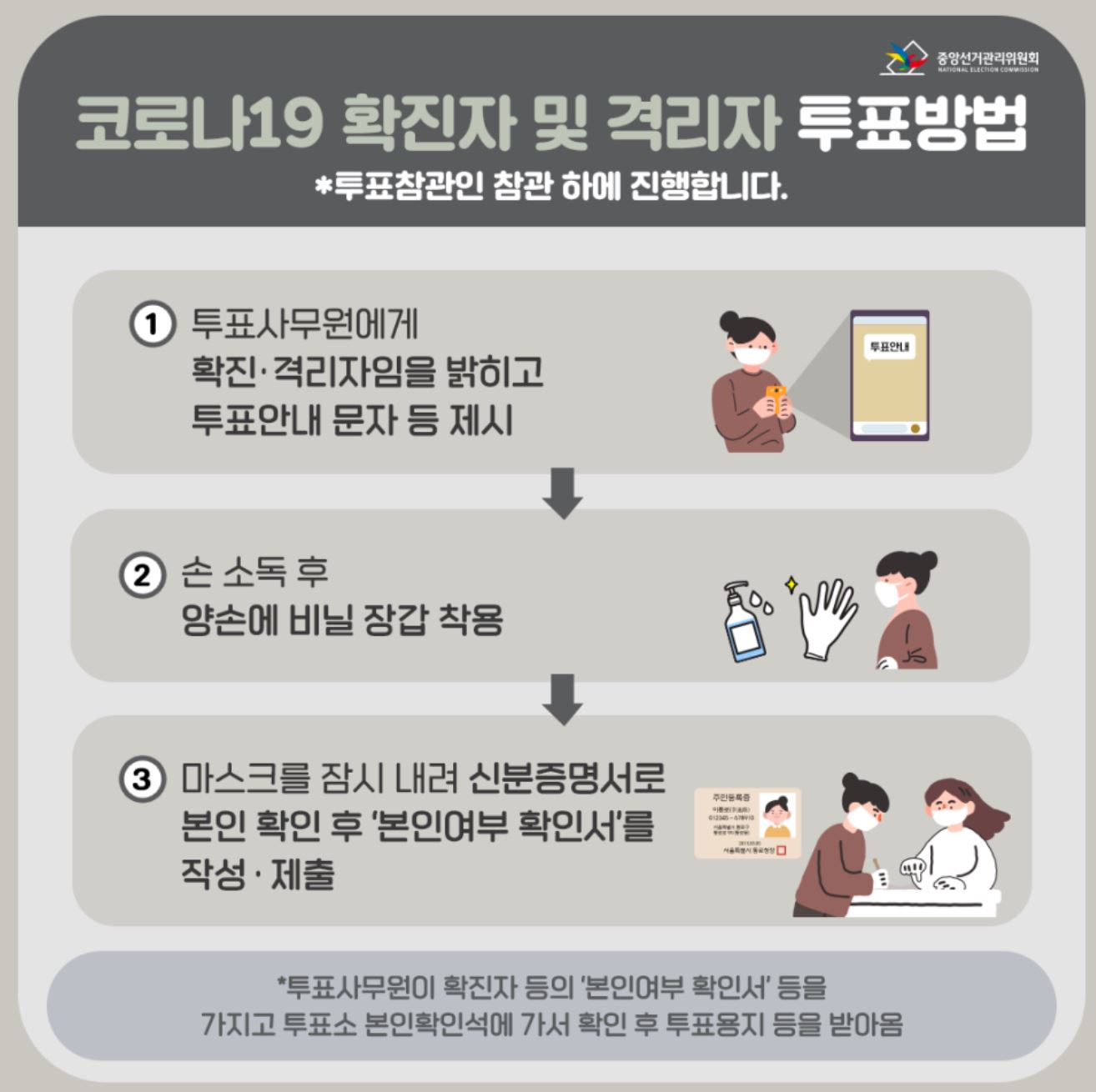 (사전투표때와 다르게 확진 및 격리 유권자는 본인이 투표함에 본인이 직접 투표를 하게 됩니다.)