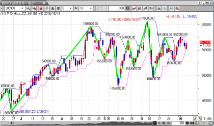 일일 촛대 차트는 보안의 당일 공개, 높은 가격, 낮은 가격, 근접한 가격을 보여준다.