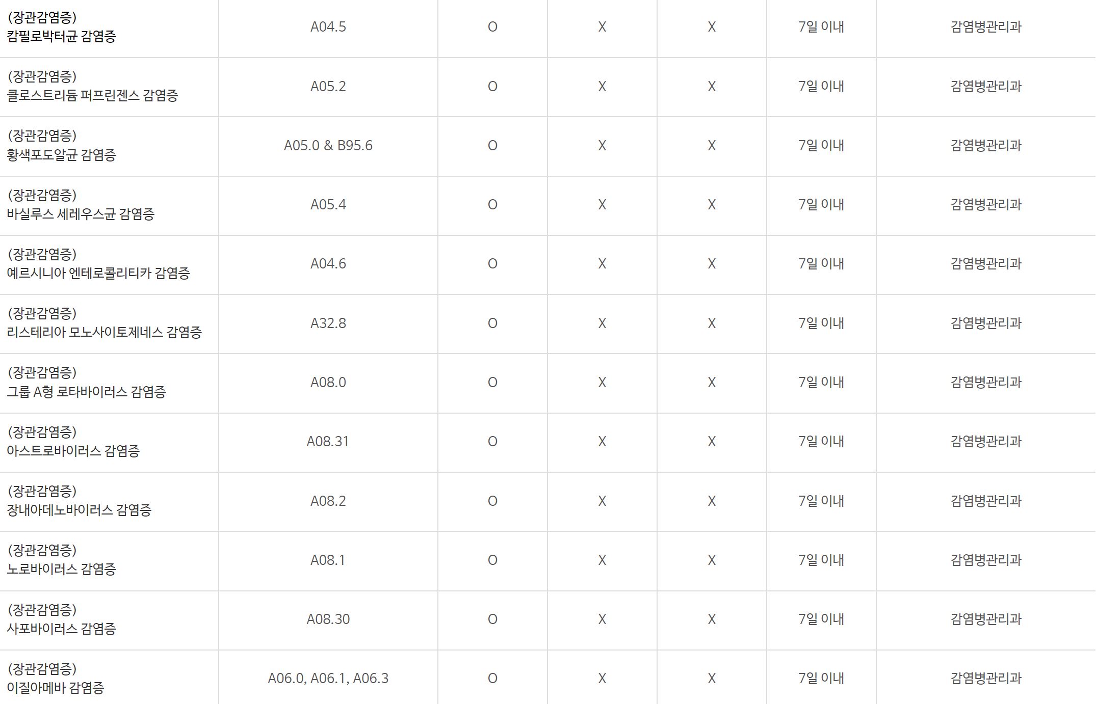 에볼라바이러스병, 중증급성호흡기증후군(SARS), 중동호흡기증후군(MERS), 신종인플루엔자, 두창(천연두), 페스트, 탄저 등이 대표적입니다.